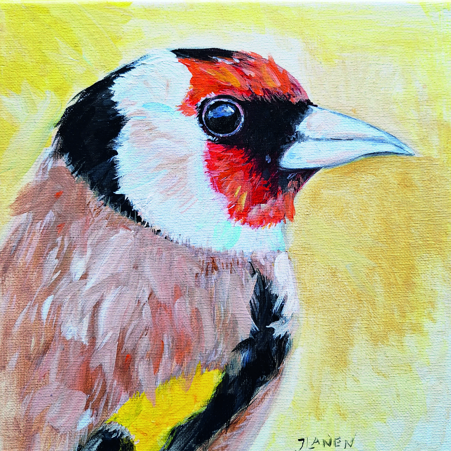 Deze collectie bestaat uit poezen, honden en vogels. Afmeting: 2 0  x  2 0 cm, geschilderd op een linnen paneeltje.